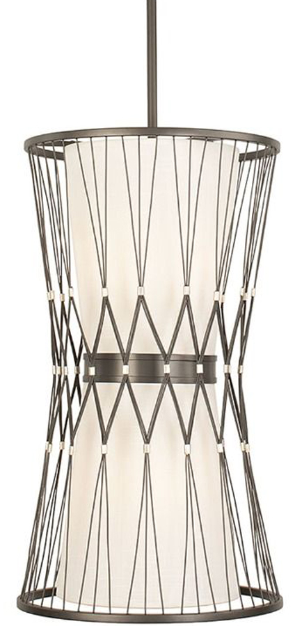 The Savoy House Joliet 6-light foyer pendant flaunts a curving look that brings organic style inspirations to mind. A central slender shade is surrounded by an outer shade with an intricate and eye-catching pattern of slender metal rods. The rich brown Rumba finish offsets the lighter-colored interior shade perfectly. Joliet is 28" in height and 16" in width. It uses 6 candelabra size bulbs of up to 60 watts each (bulbs not included). Comes with four 12" downrods and one 6" downrod.