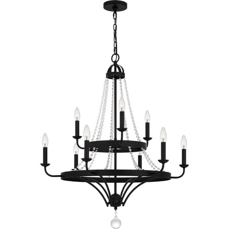Quoizel ADL5030MBK Adelaide Round Candle Chandelier with Crystal Accents, 9-Light 540 Total Watts, 36" H x 30" W, Matte Black