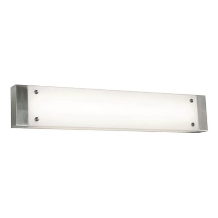 - Shallow profile LED vanity with decorative plated metal endcaps.