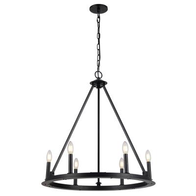 Dainolite Transitional Colby Chandelier in Painted Black Metal for the Ceiling with 6 bulb, E12 socket base 60 Watts max Dimmable and UL Approved for Damp Location with a 1 Year warranty. Great for Dining, Kitchen, Foyer/Hall rooms and Commercial use. Features include, Sloped Ceiling Adaptable, Height Adjustable LED Compatible