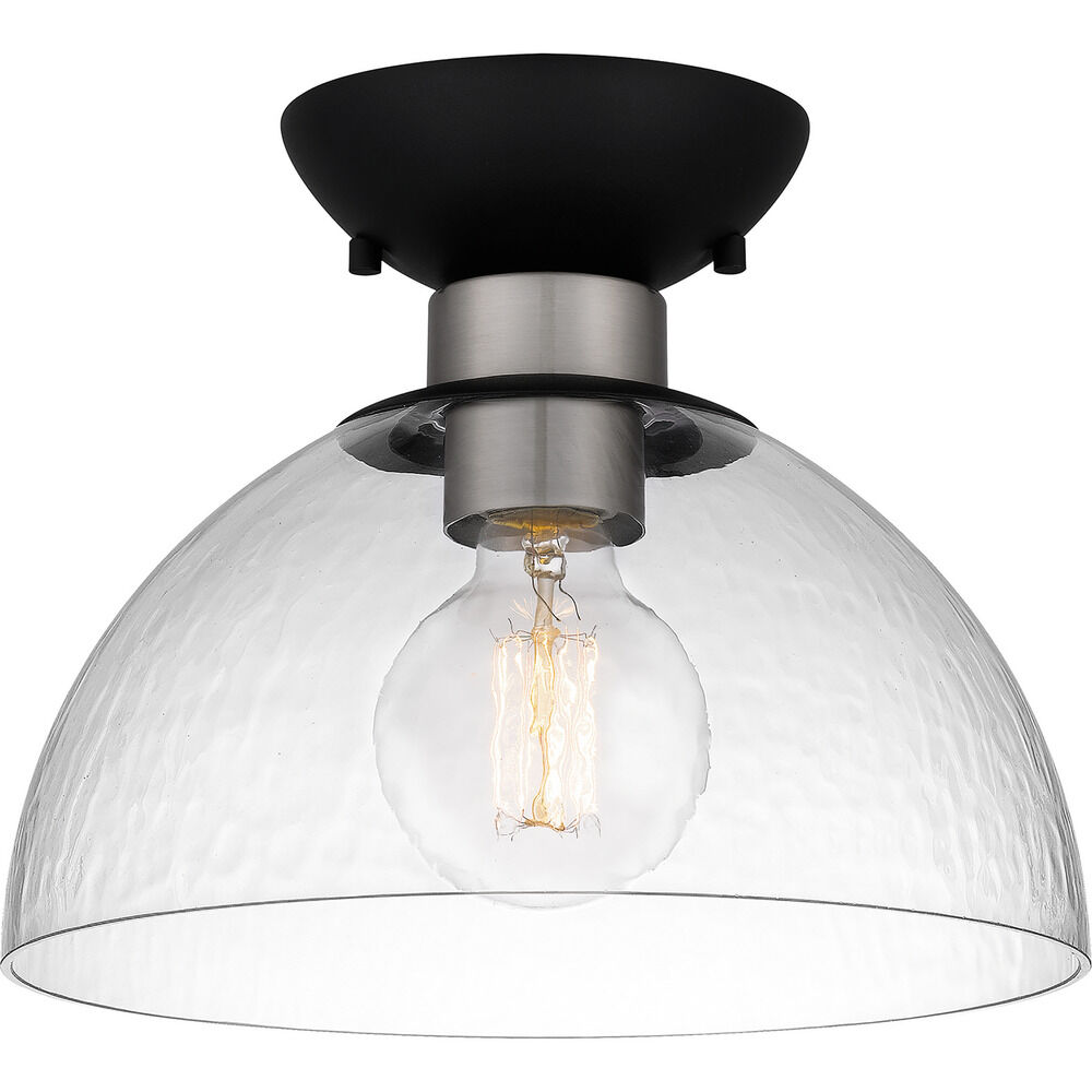 Quoizel HLY1610BN Halsey Transitional Clear Rain Glass Small Flush Mount Ceiling Light, 1-Light 100 Watt, 8" H x 10" W, Brushed Nickel