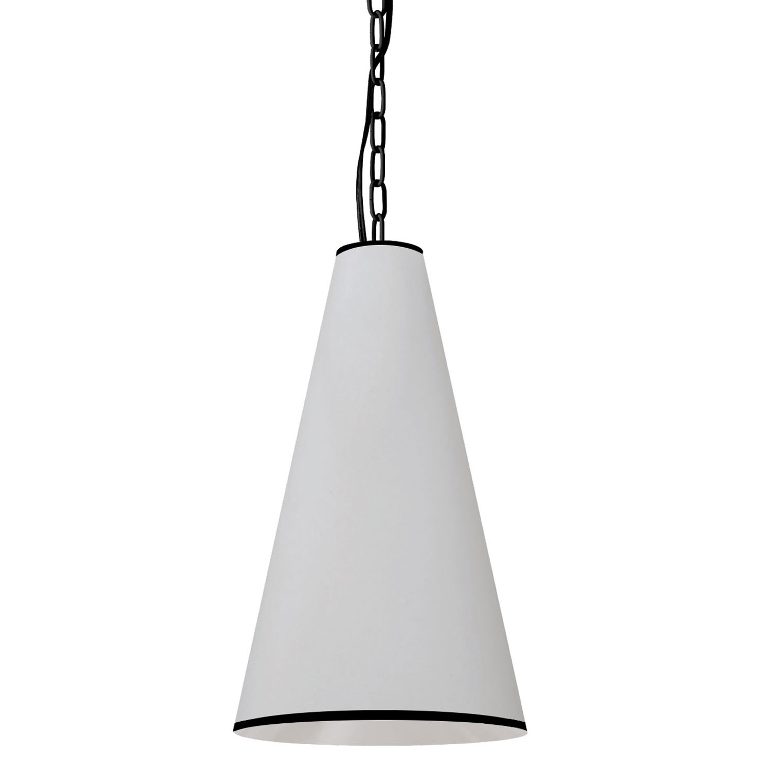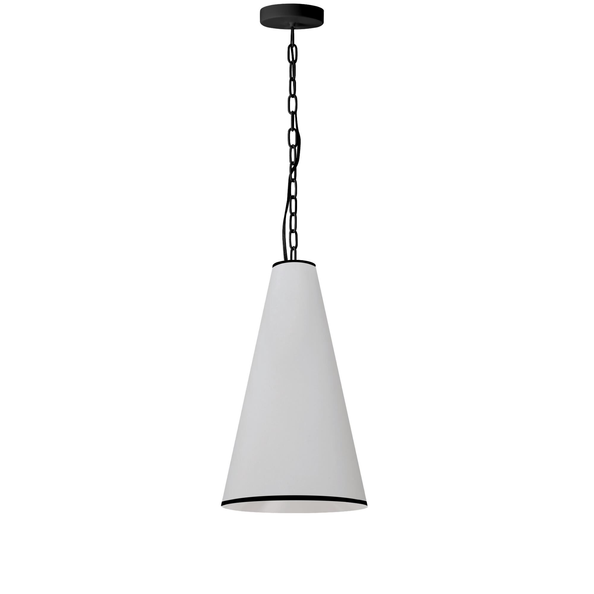 1 Light Incandescent Pendant, Matte Black with White Shade and Black Trim