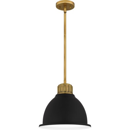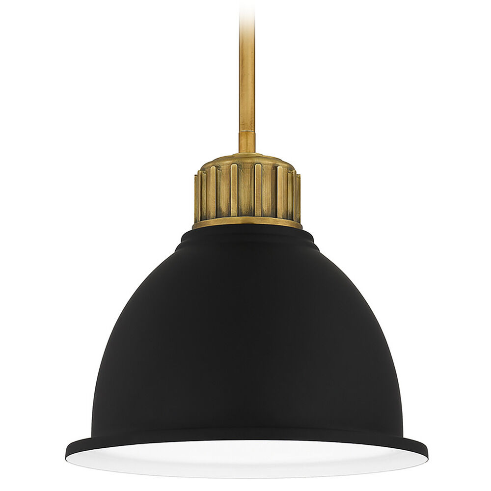 Quoizel QPP5569WS Baynard Industrial Black Metal Pendant Ceiling Light Fixture, 1-Light 100 Watt, 12" H x 13" W, Weathered Brass