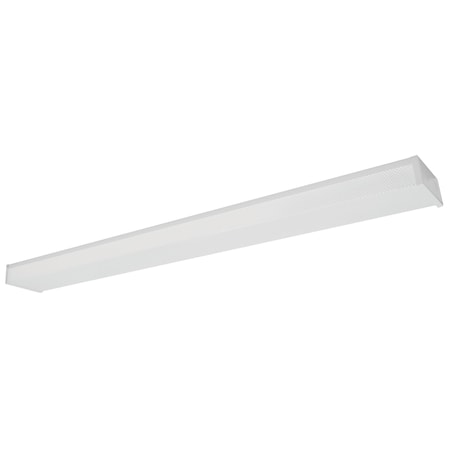- LED wrap with white metal frame and clear prismatic diffuser.
