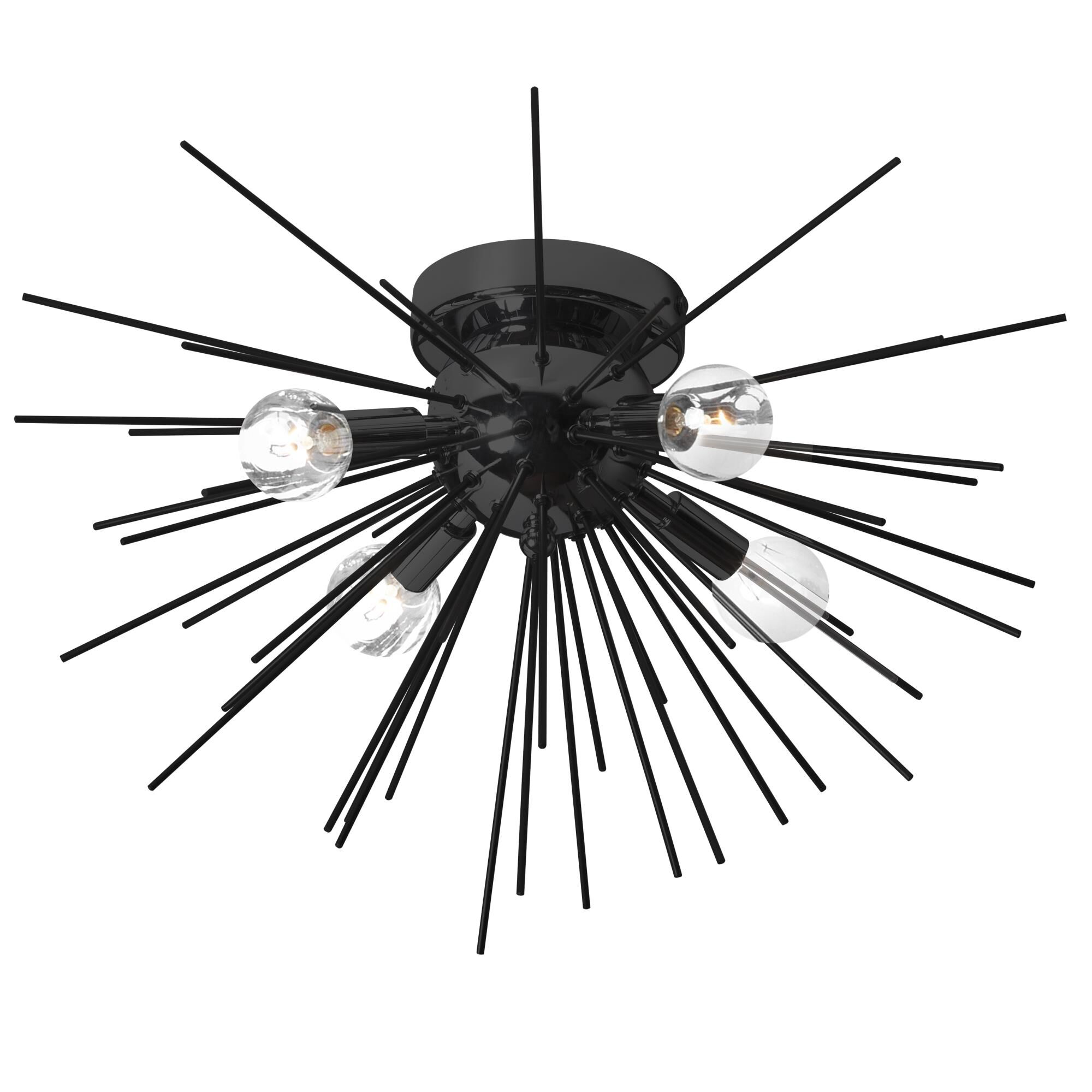Dainolite Contemporary Vega Flush Mount in Painted Black Metal for the Ceiling with 4 bulb, E12 socket base 60 Watts max Dimmable and UL Approved for Damp Location with a 1 Year warranty. Great for Bedroom, Foyer/Hall, Living rooms and Commercial use. Features include, Great design suited for all d?cor settings, Suited for Hallways and Bedroom LED Compatible