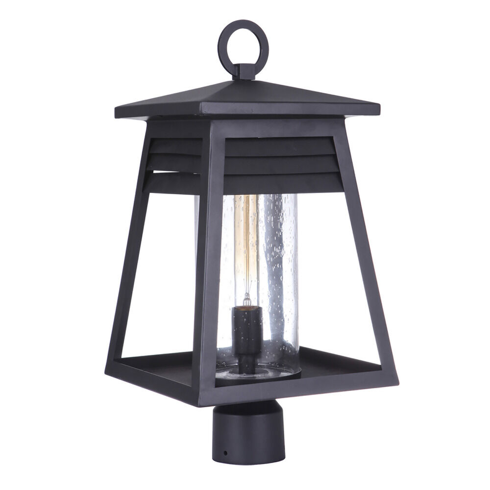 Craftmade ZA2725-TB Becca Casual Coastal Clear Seeded Glass Outdoor Post/Pole Mount, 1-Light 60 Watt, 20" H x 10" W, Textured Matte Black