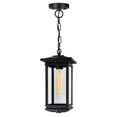 Radiating light sideways in all directions, this hanging lantern is the perfect fixture to illuminate your covered patio or outdoor seating area. The Oakwood 1 Light Outdoor Black Pendant is designed with a black metal frame with glass panes and an adjustable hanging chain. With this fixture's rectangular silhouette and clean lines, it can also lend a contemporary touch to your space.Lighting is jewelry for the home, and there is the perfect piece for every room. This fixture is done in a beautiful black finish which could be the missing piece to lighten up and fall in love with your space all over again.<br/><br/>Features :<br/><br/>- Feel confident with your purchase and rest assured. This fixture comes with a one year warranty against manufacturers defects to give you piece of mind that your product will be in perfect condition.<br/>- Dimensions: H 15" x W 6.9" x L 6.9"<br/>- Black Finish - E26 Bulb Not Included - Outdoor (Wet Location)<br/>- cETLus Approved<br/>- Includes Assembly Instructions and Hardware<br/>- Compatible With Standard Low Voltage Dimmer.<br/><br/>Specifications :<br/><br/>- Number of Lights : 1<br/>- Voltage : 120v<br/>- Bulb Type : E26<br/>- Warranty Description : One year warranty against manufacturers defect<br/>- Installation Type : Hardwired<br/>- Material : Metal.