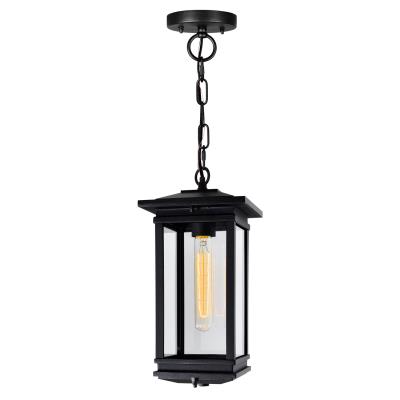 CWI Lighting Oakwood 1 Light Glass Outdoor Hanging Lantern Pendant in Black