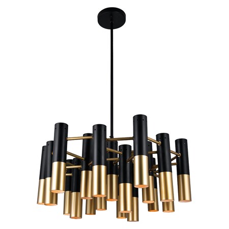 Add a premium look to your space with this Large Anem 19 Light Chandelier. Designed as a transitional downlight with candelabra base, this piece gets a modern update from its matte black and satin gold finish. The two hues fuse well together as flat black absorbs the over-the-top tone of gold. The slender pipe-like cylindrical shades of this chandelier provide cozy lighting perfect for areas where you need a little drama and interest.Lighting is jewelry for the home, and there is the perfect piece for every room. This fixture is done in a beautiful matte black & satin gold finish which could be the missing piece to lighten up and fall in love with your space all over again.<br/><br/>Features :<br/><br/>- Feel confident with your purchase and rest assured. This fixture comes with a one year warranty against manufacturers defects to give you piece of mind that your product will be in perfect condition.<br/>- Dimensions: H 13.5" x W 26" x L 26"<br/>- Matte Black & Satin Gold Finish - E12 Bulb Not Included - Indoor (Dry Location)<br/>- cETLus Approved<br/>- Includes Assembly Instructions and Hardware<br/>- Compatible With Standard Low Voltage Dimmer.<br/><br/>Specifications :<br/><br/>- Number of Lights : 19<br/>- Voltage : 120v<br/>- Bulb Type : E12<br/>- Warranty Description : One year warranty against manufacturers defect<br/>- Installation Type : Hardwired<br/>- Material : Metal.