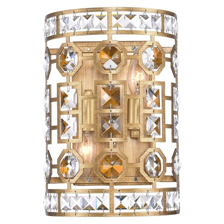 - This champagne finished wall light is ready to give a luxe impression. Designed with sparkling prisms within golden geometric frames, the Belinda 2 Light Wall Sconce can give any room extra pizzazz. This glitzy wall light can change a small powder room's ambiance and can instantly transform a bathroom into a pampering sanctuary that looks like a million bucks. This light fixture is just what you need to give a compact space a true glam transformation.