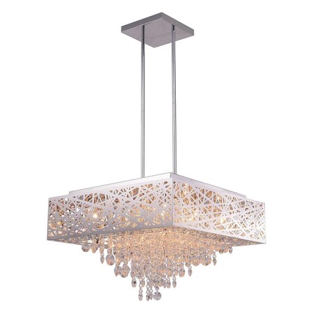 A lighting fixture of understated elegance. The Eternity 12 Light Chandelier displays charming crystal threads dangling in inverted pyramid style from the inside of a rectangular drum shade. This glam light is the perfect accent piece to spruce up your bedroom, dining area, living room, or entertainment room.