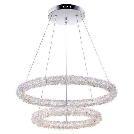 The magnificent Arielle 2 Tier LED Chandelier exudes glamour that will spark conversations. Two twinkling halos of clear crystals provide all-around light for your space. The 25 inch and 17 inch glittering discs are held by adjustable cables connected to a chrome-finished round canopy. Expect that the divine presence of this chandelier will provide you, your family, and your guests with a luxurious yet cozy ambiance to create lasting memories at.Lighting is jewelry for the home, and there is the perfect piece for every room. This fixture is done in a beautiful chrome finish which could be the missing piece to lighten up and fall in love with your space all over again.<br/><br/>Features :<br/><br/>- Feel confident with your purchase and rest assured. This fixture comes with a three years warranty against manufacturers defects to give you peace of mind that your product will be in perfect condition.<br/>- Dimensions: H 2" x W 25" x L 25"<br/>- Chrome Finish - Integrated LED Bulb Included - Indoor (Dry Location)<br/>- cETLus Approved<br/>- Includes Assembly Instructions and Hardware<br/>- Compatible With Standard Low Voltage Dimmer.<br/><br/>Specifications :<br/><br/>- Number of Lights : 1<br/>- Voltage : 120v<br/>- Bulb Type : Integrated LED<br/>- Warranty Description : Three years warranty against manufacturers defect<br/>- Installation Type : Hardwired<br/>- Material : Metal.