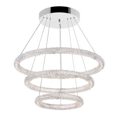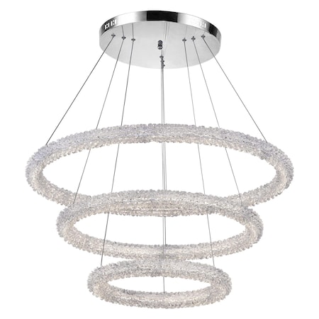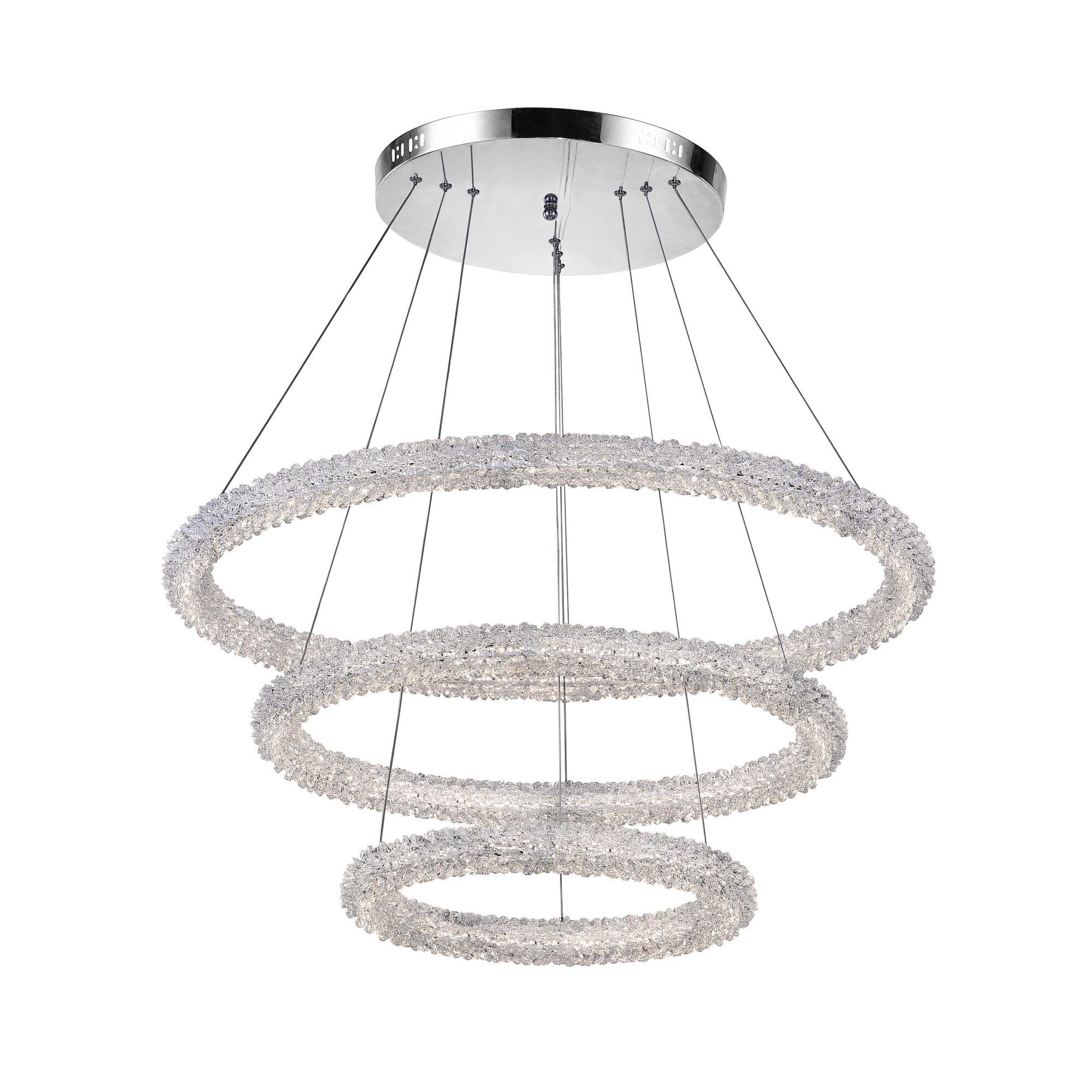 - The Arielle 3 Tier LED Chandelier will lend elegance, glamour and richness to your living room. This 32 inch oversized down chandelier features three cascading halos of sparkly crystals ready to illuminate any space, literally and figuratively. This solidly built crystal ring chandelier has a complementing chrome canopy. You can also use this classy fixture with adjustable cables to light up your entryway or your high ceiling dining room.