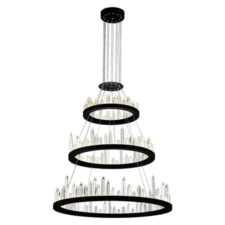 Streamlined yet elaborate, the Oversized Juliette 32 inch LED Chandelier in Black displays clean lines and geometric shapes that will inspire many conversations. Three black rings of varying diameters are topped with clear crystal prisms. Integrated LED make this transitional up chandelier shine. Transform your living room or entryway with the simple yet sophisticated presence of this light fixture. conversationsLighting is jewelry for the home, and there is the perfect piece for every room. This fixture is done in a beautiful black finish which could be the missing piece to lighten up and fall in love with your space all over again.<br/><br/>Features :<br/><br/>- Feel confident with your purchase and rest assured. This fixture comes with a three years warranty against manufacturers defects to give you piece of mind that your product will be in perfect condition.<br/>- Dimensions: H 31" x W 32" x L 32"<br/>- Black Finish - Integrated LED Bulb Included - Indoor (Dry Location)<br/>- cETLus Approved<br/>- Includes Assembly Instructions and Hardware<br/>- Compatible With Standard Low Voltage Dimmer.<br/><br/>Specifications :<br/><br/>- Number of Lights : 3<br/>- Voltage : 120v<br/>- Bulb Type : Integrated LED<br/>- Warranty Description : Three years warranty against manufacturers defect<br/>- Installation Type : Hardwired<br/>- Material : Metal.