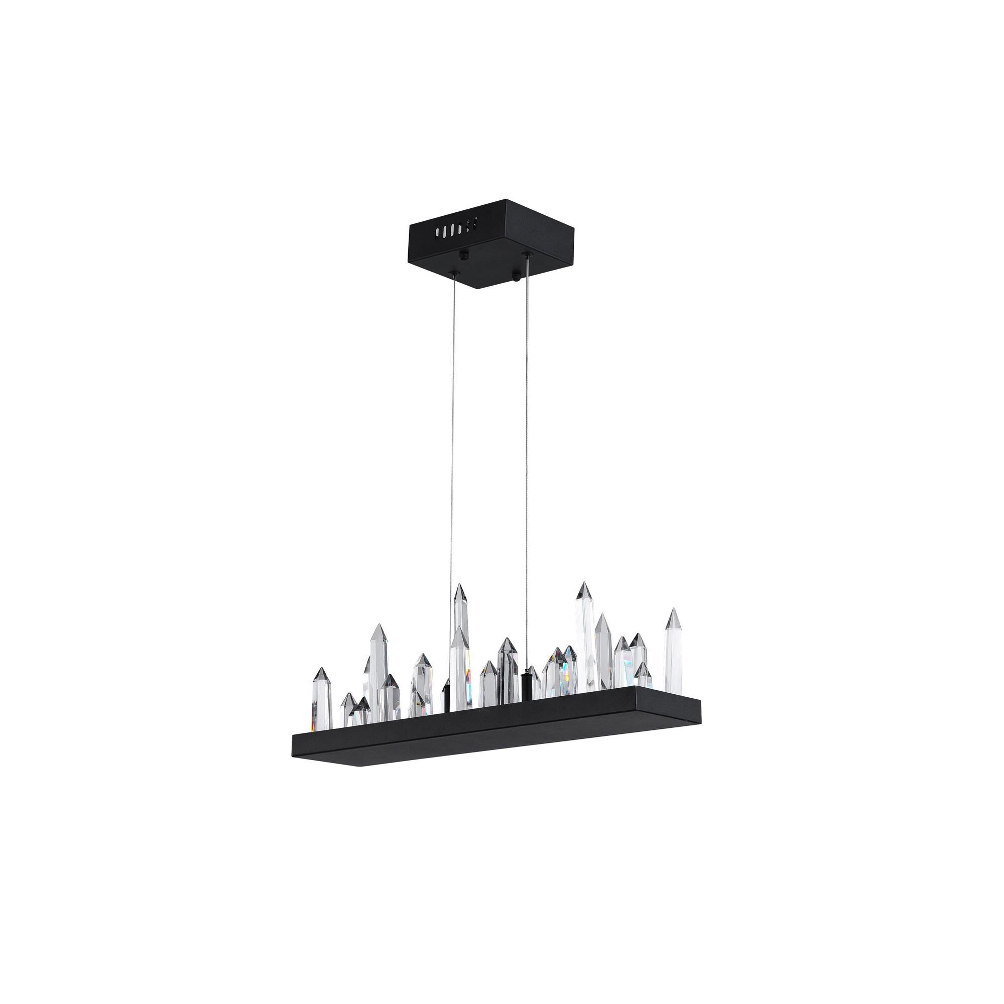 Provide some visual texture to a blank wall or a big empty ceiling space by hanging this sculptural island/pool table light. This Juliette 34 inch LED Island/Pool Table Chandelier features an simple yet intricate display of angular crystal towers perched atop a flat black rectangular pendant. This transitional luminaire has integrated LED that delivers vibrant light structures.Lighting is jewelry for the home, and there is the perfect piece for every room. This fixture is done in a beautiful black finish which could be the missing piece to lighten up and fall in love with your space all over again.<br/><br/>Features :<br/><br/>- Feel confident with your purchase and rest assured. This fixture comes with a three years warranty against manufacturers defects to give you piece of mind that your product will be in perfect condition.<br/>- Dimensions: H 7" x W x L 34"<br/>- Black Finish - Integrated LED Bulb Included - Indoor (Dry Location)<br/>- cETLus Approved<br/>- Includes Assembly Instructions and Hardware.<br/>- Compatible With Standard Low Voltage Dimmer<br/>- Comes With 120" of wire.<br/><br/>Specifications :<br/><br/>- Number of Lights : 1<br/>- Voltage : 120v<br/>- Bulb Type : Integrated LED<br/>- Warranty Description : Three years warranty against manufacturers defect<br/>- Installation Type : Hardwired<br/>- Material : Metal.