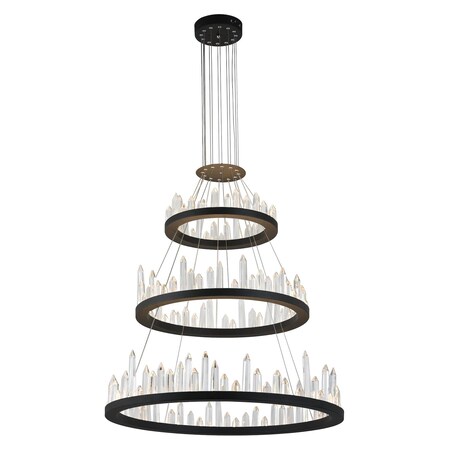 Add extra depth and visual dimension to your high ceiling with this oversized Juliette 42 inch LED Chandelier. This light fixture designed with immense attention to detail features a trio of black rings in different diameters crowned with LED integrated crystal prisms. This is a transitional up chandelier that has seamlessly combined the simplicity of the classics and the eccentricity of the modern world.Lighting is jewelry for the home, and there is the perfect piece for every room. This fixture is done in a beautiful black finish which could be the missing piece to lighten up and fall in love with your space all over again.<br/><br/>Features :<br/><br/>- Feel confident with your purchase and rest assured. This fixture comes with a three years warranty against manufacturers defects to give you piece of mind that your product will be in perfect condition.<br/>- Dimensions: H 34" x W 42" x L 42"<br/>- Black Finish - Integrated LED Bulb Included - Indoor (Dry Location)<br/>- cETLus Approved<br/>- Includes Assembly Instructions and Hardware<br/>- Compatible With Standard Low Voltage Dimmer.<br/><br/>Specifications :<br/><br/>- Number of Lights : 3<br/>- Voltage : 120v<br/>- Bulb Type : Integrated LED<br/>- Warranty Description : Three years warranty against manufacturers defect<br/>- Installation Type : Hardwired<br/>- Material : Metal.