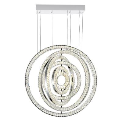 This shapely 37 inch Celina LED Chandelier can effortlessly reinvent the look of your living space. It features a glittering pendant with a silhouette reminiscent of an archery target. This round pendant allows you to subtly play with shape and scale while keeping your decor refined and stylish. Lighting is jewelry for the home, and there is the perfect piece for every room. This fixture is done in a beautiful chrome finish which could be the missing piece to lighten up and fall in love with your space all over again.<br/><br/>Features :<br/><br/>- Feel confident with your purchase and rest assured. This fixture comes with a three years warranty against manufacturers defects to give you piece of mind that your product will be in perfect condition.<br/>- Dimensions: H 37" x W 5" x L 37"<br/>- Chrome Finish - Integrated LED Bulb Included - Indoor (Dry Location)<br/>- cETLus Approved<br/>- Includes Assembly Instructions and Hardware<br/>- Compatible With Standard Low Voltage Dimmer.<br/><br/>Specifications :<br/><br/>- Number of Lights : 6<br/>- Voltage : 120v<br/>- Bulb Type : Integrated LED<br/>- Warranty Description : Three years warranty against manufacturers defect<br/>- Installation Type : Hardwired<br/>- Material : Metal.