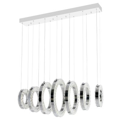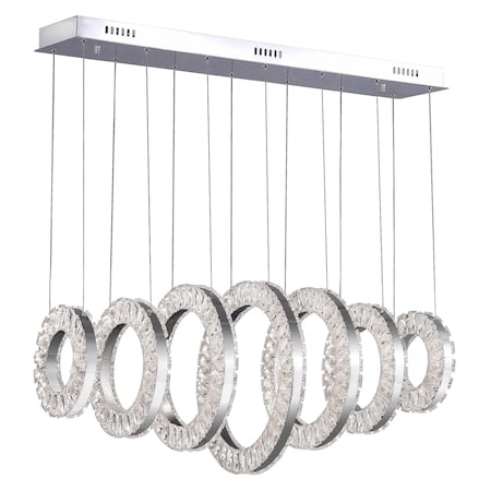 - The Celina 7 Ring LED Chandelier is a high style island/pool table light that will bring immediate glamour to your space. Looking like a true statement piece, this 37 inch long chandelier with seven gleaming crystal ring pendants will look extra glam when hung over a straight and narrow black kitchen island.