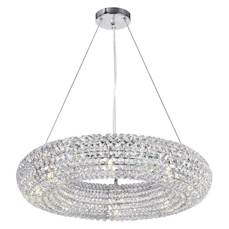 Let the Veronique 8 Light Chandelier be the crown jewel in your dining room. This twinkling down chandelier makes hearts sing with its refined grace. The disc-shaped frame enveloped in glittering crystals measures 24 inches in diameter. The suspension height can be adjusted to fit your low or high ceiling. Add a dimmer switch and be able to adjust the luminous flux to create your preferred atmosphere.Lighting is jewelry for the home, and there is the perfect piece for every room. This fixture is done in a beautiful chrome finish which could be the missing piece to lighten up and fall in love with your space all over again.<br/><br/>Features :<br/><br/>- Feel confident with your purchase and rest assured. This fixture comes with a one year warranty against manufacturers defects to give you piece of mind that your product will be in perfect condition.<br/>- Dimensions: H 5" x W 24" x L 24"<br/>- Chrome Finish - G9 Bulb Not Included - Indoor (Dry Location)<br/>- cETLus Approved<br/>- Includes Assembly Instructions and Hardware<br/>- Compatible With Standard Low Voltage Dimmer.<br/><br/>Specifications :<br/><br/>- Number of Lights : 8<br/>- Voltage : 120v<br/>- Bulb Type : G9<br/>- Warranty Description : One year warranty against manufacturers defect<br/>- Installation Type : Hardwired<br/>- Material : Metal.