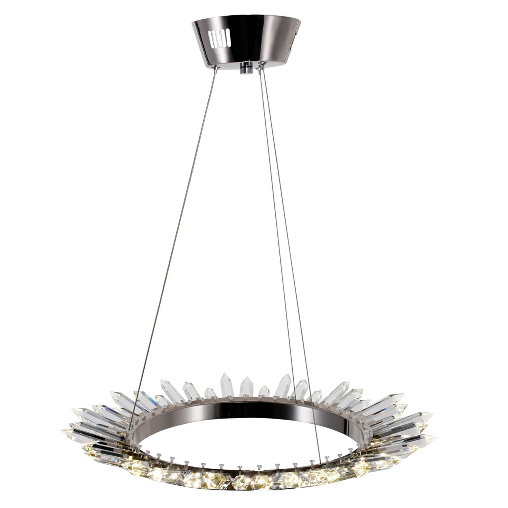 Aptly named, the Arctic Queen 24 inch LED Chandelier will crown your living space with glorious beauty. With its disc pendant finished in polished nickel and LED inchtegrated crystal towers, this light fixture will steal the show. Brighten your kitchen, dining area, or even your bedroom with this large up chandelier that sheds a monarchial glow.Lighting is jewelry for the home, and there is the perfect piece for every room. This fixture is done in a beautiful polished nickel finish which could be the missing piece to lighten up and fall in love with your space all over again.<br/><br/>Features :<br/><br/>- Feel confident with your purchase and rest assured. This fixture comes with a three years warranty against manufacturers defects to give you piece of mind that your product will be in perfect condition.<br/>- Dimensions: H 3 x W 24 x L 24<br/>- Polished Nickel Finish - Integrated LED Bulb Included - Indoor (Dry Location)<br/>- cETLus Approved<br/>- Includes Assembly Instructions and Hardware<br/>- Compatible With Standard Low Voltage Dimmer.<br/><br/>Specifications :<br/><br/>- Number of Lights : 1<br/>- Voltage : 120v<br/>- Bulb Type : Integrated LED<br/>- Warranty Description : Three years warranty against manufacturers defect<br/>- Installation Type : Hardwired<br/>- Material : Metal.