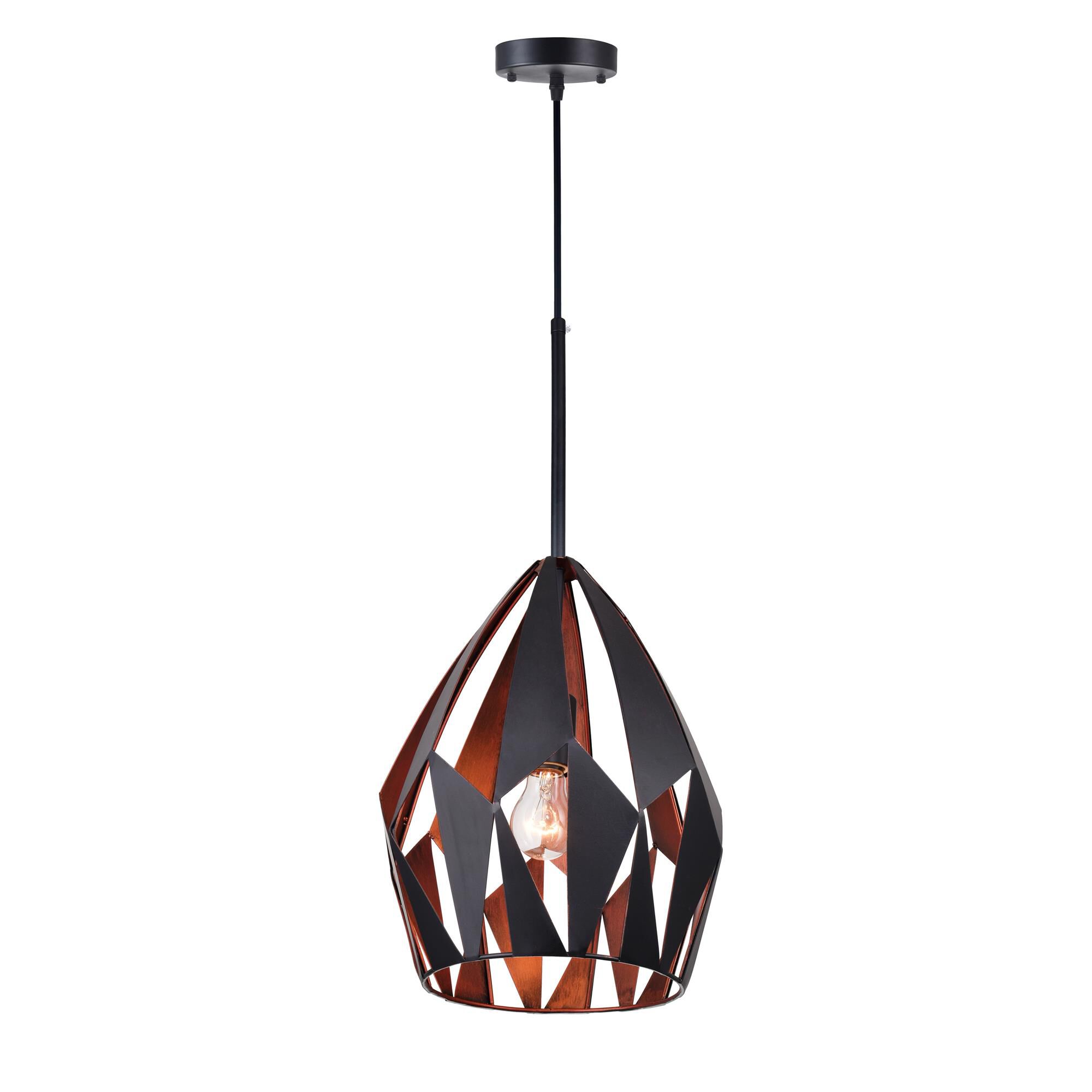 - Use this Oxide 12 inch Single Light Pendant to add not just illumination but also warmth to your space. Designed with rustic elegance, this light source features a metal shade with geometric openwork style. The outer side is in black finish while the inside is in a gorgeous shade of copper. This fixture will work in a variety of spaces including kitchens, dining rooms, foyers, and even laundry rooms.