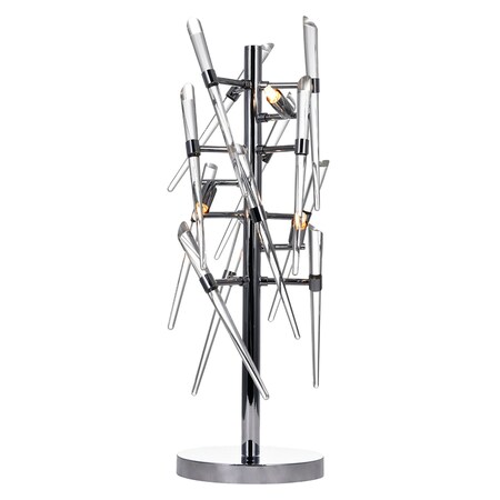 Add character to a favorite corner of your home with this Icicle 3 Light Table Lamp. This metal and glass lamp in chrome finish stands 25 inches tall and has the perfect glow to add modernity to a room. It's bold, dramatic, and elegant. This is the table lamp to pick when you want to add visual intrigue and take the humdrum out of your space.Lighting is jewelry for the home, and there is the perfect piece for every room. This fixture is done in a beautiful chrome finish which could be the missing piece to lighten up and fall in love with your space all over again.<br/><br/>Features :<br/><br/>- Feel confident with your purchase and rest assured. This fixture comes with a one year warranty against manufacturers defects to give you piece of mind that your product will be in perfect condition.<br/>- Dimensions: H 25" x W 11" x L 11"<br/>- Chrome Finish - G9 Bulb Not Included - Indoor (Dry Location)<br/>- cETLus Approved<br/>- Includes Assembly Instructions and Hardware<br/>- Compatible With Standard Low Voltage Dimmer.<br/><br/>Specifications :<br/><br/>- Number of Lights : 3<br/>- Voltage : 120v<br/>- Bulb Type : G9<br/>- Warranty Description : One year warranty against manufacturers defect<br/>- Installation Type : Hardwired<br/>- Material : Metal.
