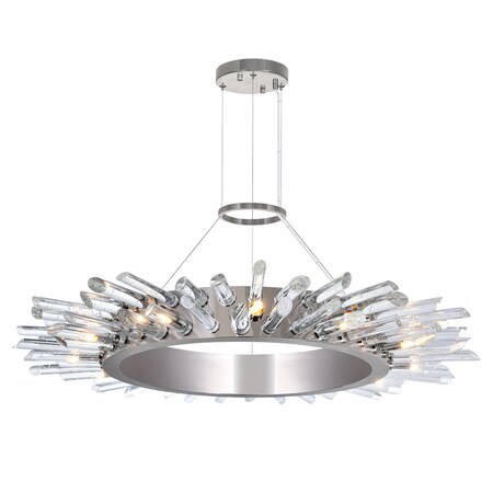Show off your unique style through the extraordinary appeal of the Thorns 12 Light Chandelier. This ring chandelier has crystal tubes spiking from a 32 inch metal ring frame in polished nickel finish. Twelve "thorns" of light are responsible for making this luminaire glow. Perfect for modern industrial and industrial chic spaces, this chandelier allows you to crown your home with a style that's all you.Lighting is jewelry for the home, and there is the perfect piece for every room. This fixture is done in a beautiful polished nickel finish which could be the missing piece to lighten up and fall in love with your space all over again.<br/><br/>Features :<br/><br/>- Feel confident with your purchase and rest assured. This fixture comes with a one year warranty against manufacturers defects to give you piece of mind that your product will be in perfect condition.<br/>- Dimensions: H 4" x W 32" x L 32"<br/>- Polished Nickel Finish - G9 Bulb Not Included - Indoor (Dry Location)<br/>- cETLus Approved<br/>- Includes Assembly Instructions and Hardware<br/>- Compatible With Standard Low Voltage Dimmer.<br/><br/>Specifications :<br/><br/>- Number of Lights : 12<br/>- Voltage : 120v<br/>- Bulb Type : G9<br/>- Warranty Description : One year warranty against manufacturers defect<br/>- Installation Type : Hardwired<br/>- Material : Metal.
