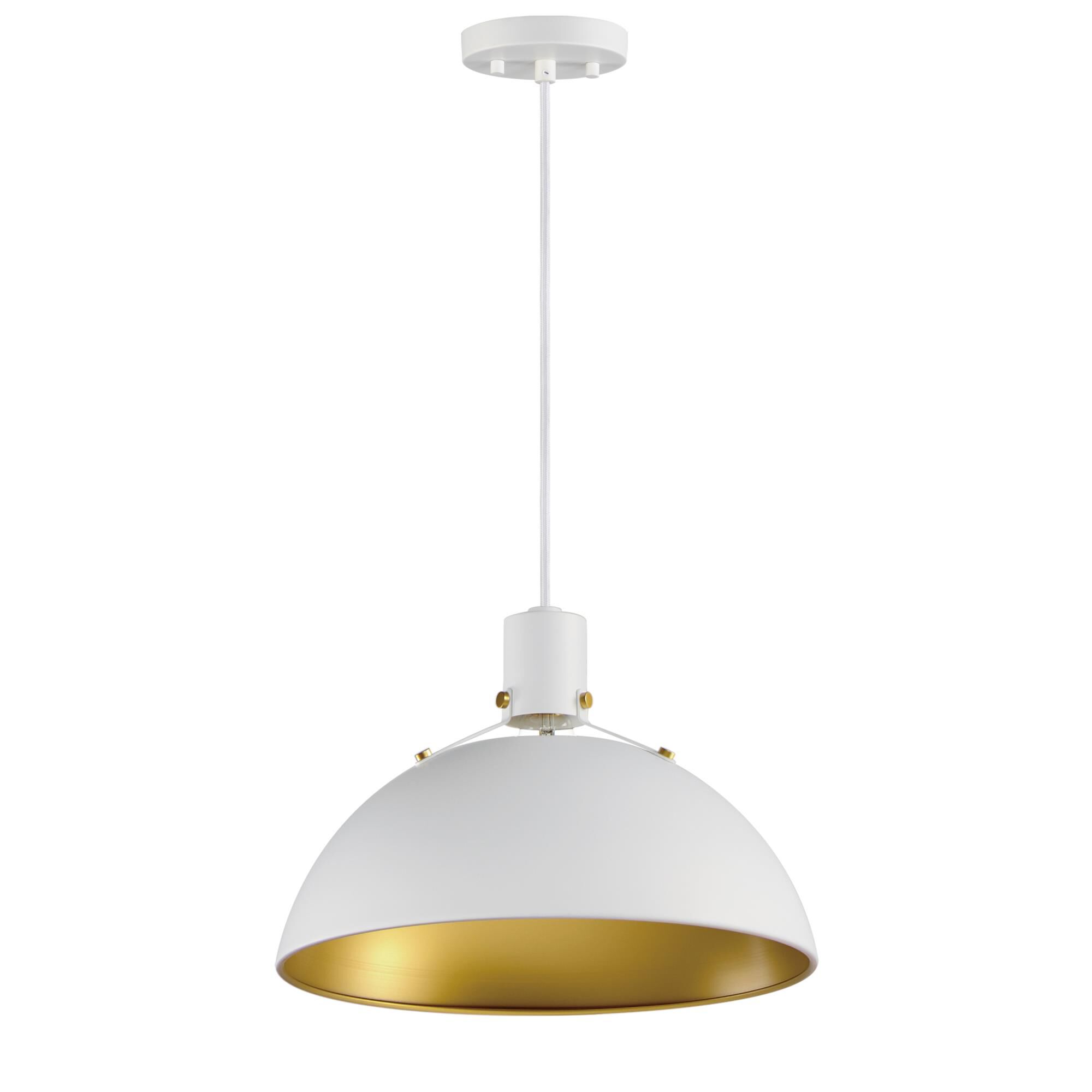 This 1 light Single Pendant from the Dawn collection by Maxim will enhance your home with a perfect mix of form and function. The features include a White/Satin Brass finish applied by experts. Product Features Include: Brand: Maxim Lighting, Collection: Dawn, SKU: 12045WTSBR, UPC: 783209280885, Category: Pendant, Finish: White/Satin Brass, Material: Steel/Aluminum, Length: 15.50 in., Width: 15.25 in., Height: 10.50 in., Max Height: 133.75 in., Backplate/Canopy Width: 0.00 in., Backplate/Canopy Length: 0.00 in., Weight: 2.42 lb., Included Lead Wire: 120, Bulbs Included: No, Bulb Category: Incandescent, Primary Bulb(s): 1 x 60.00 watts E26 Medium, Voltage: 120, Safety Rating: Dry