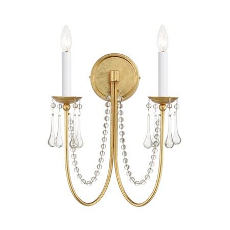 Maxim Lighting 12161GL/CRY Plumette - 2 Light Wall Sconce In Traditional Style-16 Inches Tall and 14 Inches Wide, Finish Color: Gold Leaf