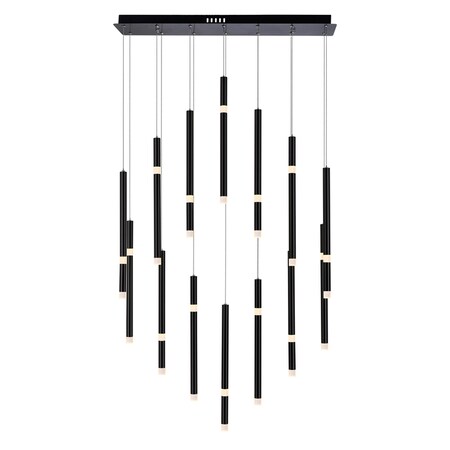Add personality to your living room with this Flute 14 Light Chandelier in black finish. A rectangular canopy holds 14 chime-like bulbs that are compact and customizable. Adjust the height to create a symmetrical or asymmetrical display of light. The tip of each vertical bar gleams a mellow light perfect for creating a relaxing and inviting ambiance in your living space. Lighting is jewelry for the home, and there is the perfect piece for every room. This fixture is done in a beautiful black finish which could be the missing piece to lighten up and fall in love with your space all over again.<br/><br/>Features :<br/><br/>- Feel confident with your purchase and rest assured. This fixture comes with a three years warranty against manufacturers defects to give you piece of mind that your product will be in perfect condition.<br/>- Dimensions: H 45" x W 7" x L 32"<br/>- Black Finish - Integrated LED Bulb Included - Indoor (Dry Location)<br/>- cETLus Approved<br/>- Includes Assembly Instructions and Hardware<br/>- Compatible With Standard Low Voltage Dimmer.<br/><br/>Specifications :<br/><br/>- Number of Lights : 14<br/>- Voltage : 120v<br/>- Bulb Type : Integrated LED<br/>- Warranty Description : Three years warranty against manufacturers defect<br/>- Installation Type : Hardwired<br/>- Material : Metal.