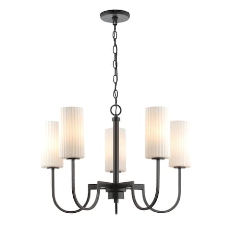 This 5 light Chandelier from the Town and Country collection by Maxim will enhance your home with a perfect mix of form and function. The features include a Black finish applied by experts. Product Features Include: Brand: Maxim Lighting, Collection: Town and Country, SKU: 32005SWBK, UPC: 783209280816, Category: Chandelier, Finish: Black, Glass: Satin White, Material: Steel/Fluted White Glass, Width: 26.75 in., Height: 16.25 in., Max Height: 55.50 in., Backplate/Canopy Width: 5.00 in., Backplate/Canopy Length: 0.00 in., Backplate/Canopy Thickness: 0.75 in., Weight: 13.20 lb., Included Lead Wire: 120, Bulbs Included: No, Bulb Category: Incandescent, Primary Bulb(s): 5 x 40.00 watts E12 Candelabra, Voltage: 120, Safety Rating: Dry