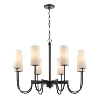 This 8 light Single-Tier Chandelier from the Town and Country collection by Maxim will enhance your home with a perfect mix of form and function. The features include a Black finish applied by experts. Product Features Include: Brand: Maxim Lighting, Collection: Town and Country, SKU: 32008SWBK, UPC: 783209280823, Category: Chandelier, Finish: Black, Glass: Satin White, Material: Steel/Fluted White Glass, Width: 34.00 in., Height: 22.50 in., Max Height: 61.75 in., Backplate/Canopy Width: 5.00 in., Backplate/Canopy Length: 0.00 in., Backplate/Canopy Thickness: 0.75 in., Weight: 20.90 lb., Included Lead Wire: 120, Bulbs Included: No, Bulb Category: Incandescent, Primary Bulb(s): 8 x 40.00 watts E12 Candelabra, Voltage: 120, Safety Rating: Dry