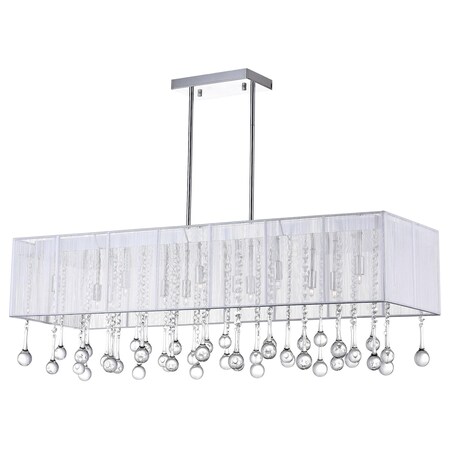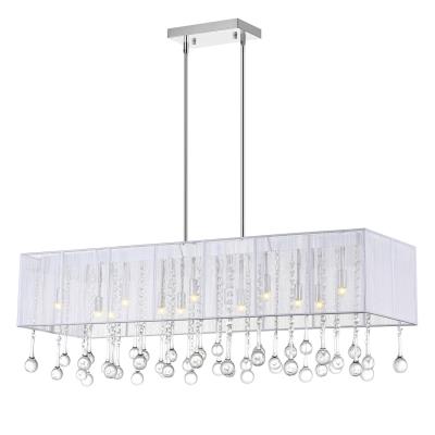 - Let the Water Drop 14 Light Chandelier (Clear Crystal) lend a special atmosphere to your space. This glistening light fixture is designed with a 40 inch rectangular shade in white or silver. Dangling underneath are clear crystal droplets that radiate light. This is the exact finishing touch a modern but sterile space needs.