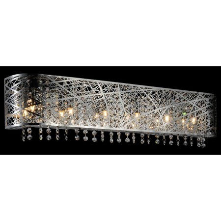 The Eternity 6 Light Wall Sconce is a dazzling modern sconce that will add tons of style and personality to your bathroom. It features a polished chrome shade with laser cut pattern and strands of clear crystals dripping from the inside. With six G9 bi pin bulbs that will provide ample lighting, this wall mounted vanity light will bring a sophisticated touch to your master bath or halfway bath.