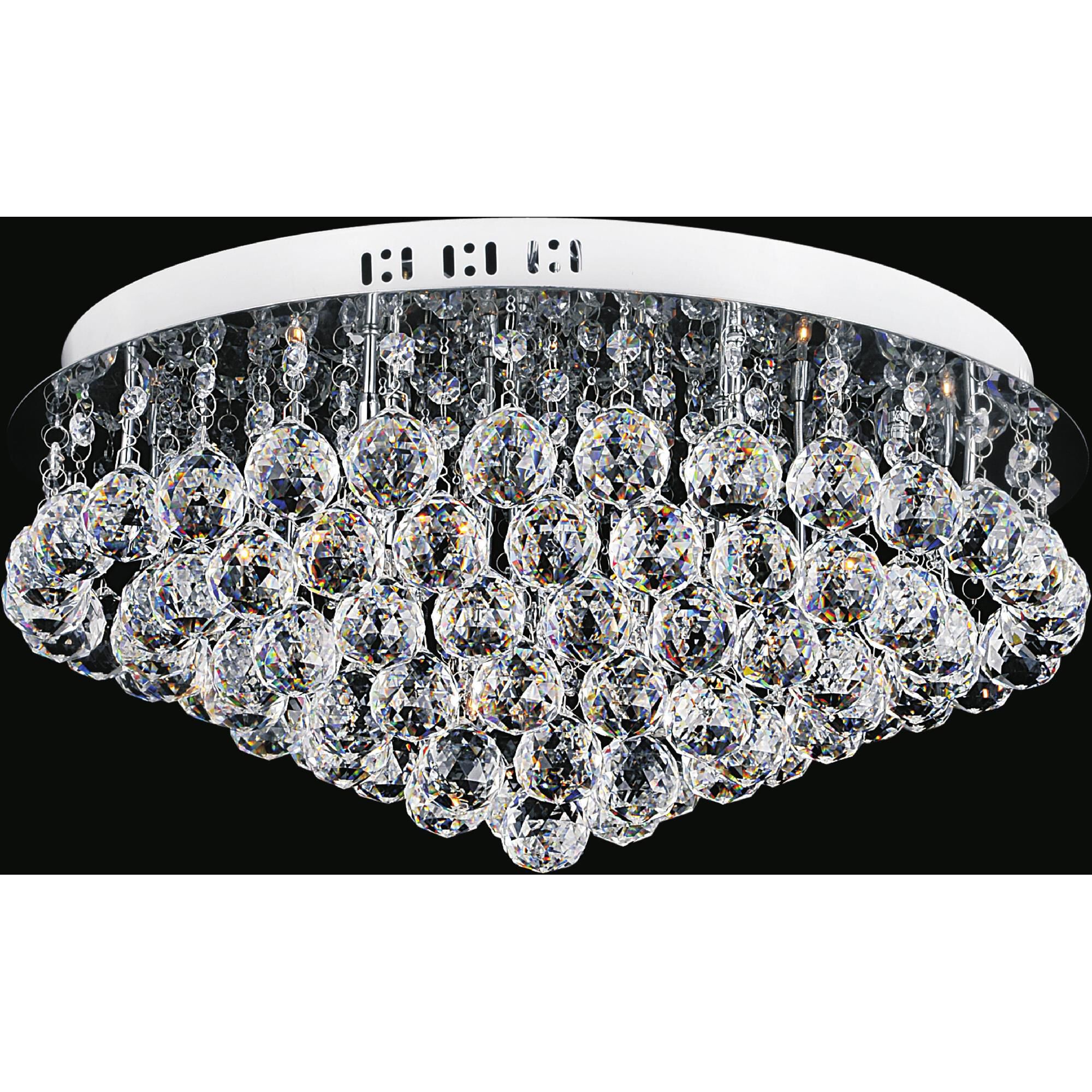 This breathtaking 9 Light Flush Mount with Chrome Finish is a beautiful piece from our Sparkle Collection. With its sophisticated beauty and stunning details, it is sure to add the perfect touch to your decor. Mounting Direction: Down / Assembly Required: Yes / Canopy Included: Yes / Dimable: Yes.