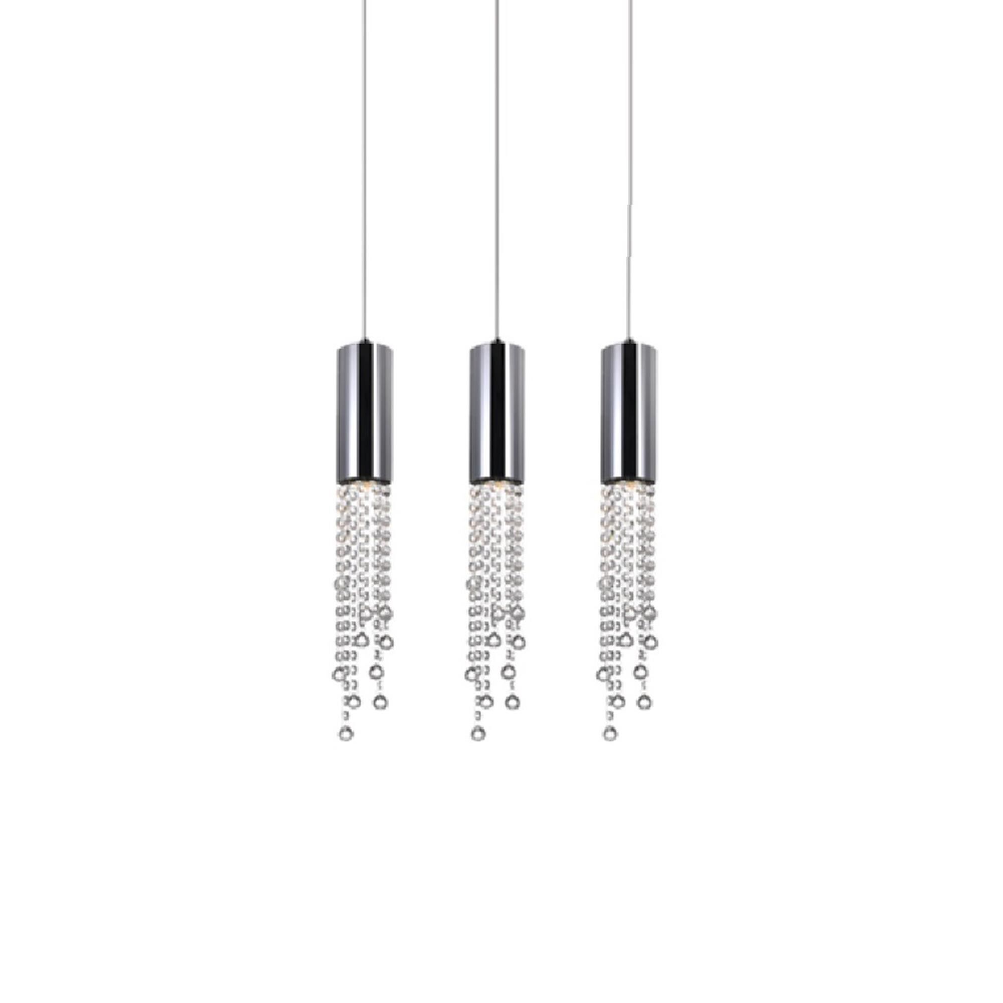 The Extended 3 Light Chandelier with Rectangular Canopy not only gives your ceiling a heightened appearance with its elongated form. It also heightens the style of a space with its crystal drop features that shed a soft, twinkling light. This multi Light pendant is designed with three tube pendants in polished chrome dangling with clear crystal beads. With this light source, you can easily create a space that looks and feels regal without having to spend a fortune.Lighting is jewelry for the home, and there is the perfect piece for every room. This fixture is done in a beautiful chrome finish which could be the missing piece to lighten up and fall in love with your space all over again.<br/><br/>Features :<br/><br/>- Feel confident with your purchase and rest assured. This fixture comes with a one year warranty against manufacturers defects to give you piece of mind that your product will be in perfect condition.<br/>- Dimensions: H 20" x W 5" x L 20"<br/>- Chrome Finish - GU10 Bulb Not Included - Indoor (Dry Location)<br/>- cETLus Approved<br/>- Includes Assembly Instructions and Hardware<br/>- Compatible With Standard Low Voltage Dimmer.<br/><br/>Specifications :<br/><br/>- Number of Lights : 3<br/>- Voltage : 120v<br/>- Bulb Type : GU10<br/>- Warranty Description : One year warranty against manufacturers defect<br/>- Installation Type : Hardwired<br/>- Material : Metal.
