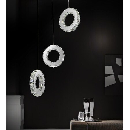 Transform your home into a setting with a luxe vibe by adding the Ring 3 Pendant LED Chandelier. This light fixture comes with faceted crystal embellishments, chrome-finished hardware, and built inch energy-efficient LEDs. Perfect over a dining table or kitchen island counter, this shimmering light source will certainly give your space an air of design confidence.Lighting is jewelry for the home, and there is the perfect piece for every room. This fixture is done in a beautiful stainless steel finish which could be the missing piece to lighten up and fall in love with your space all over again.<br/><br/>Features :<br/><br/>- Feel confident with your purchase and rest assured. This fixture comes with a three years warranty against manufacturers defects to give you piece of mind that your product will be in perfect condition.<br/>- Dimensions: H 7" x W 16" x L 16"<br/>- Stainless Steel Finish - Integrated LED Bulb Included - Indoor (Dry Location)<br/>- cETLus Approved<br/>- Includes Assembly Instructions and Hardware<br/>- Compatible With Standard Low Voltage Dimmer.<br/><br/>Specifications :<br/><br/>- Number of Lights : 18<br/>- Voltage : 120v<br/>- Bulb Type : Integrated LED<br/>- Warranty Description : Three years warranty against manufacturers defect<br/>- Installation Type : Hardwired<br/>- Material : Metal.