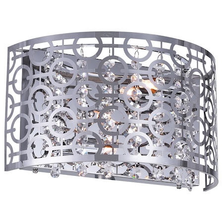 Shine stylish light to a dark and dreary space through the Galant 2 Light Wall Sconce. Perfect for the bathroom, the hallway, the library, or the formal dining room, this wall-mounted light fixture will bring a warm glow and add a visual intrigue to any space. With its patterned shade in chrome finish and shining crystal detail, this lighting option will improve the ambiance of wherever it is placed. Lighting is jewelry for the home, and there is the perfect piece for every room. This fixture is done in a beautiful stainless steel finish which could be the missing piece to lighten up and fall in love with your space all over again.<br/><br/>Features :<br/><br/>- Feel confident with your purchase and rest assured. This fixture comes with a one year warranty against manufacturers defects to give you piece of mind that your product will be in perfect condition.<br/>- Dimensions: H 7" x W 12" x L 6"<br/>- Stainless Steel Finish - G9 Bulb Not Included - Indoor (Dry Location)<br/>- cETLus Approved<br/>- Includes Assembly Instructions and Hardware<br/>- Compatible With Standard Low Voltage Dimmer.<br/><br/>Specifications :<br/><br/>- Number of Lights : 2<br/>- Voltage : 120v<br/>- Bulb Type : G9<br/>- Warranty Description : One year warranty against manufacturers defect<br/>- Installation Type : Hardwired<br/>- Material : Metal.