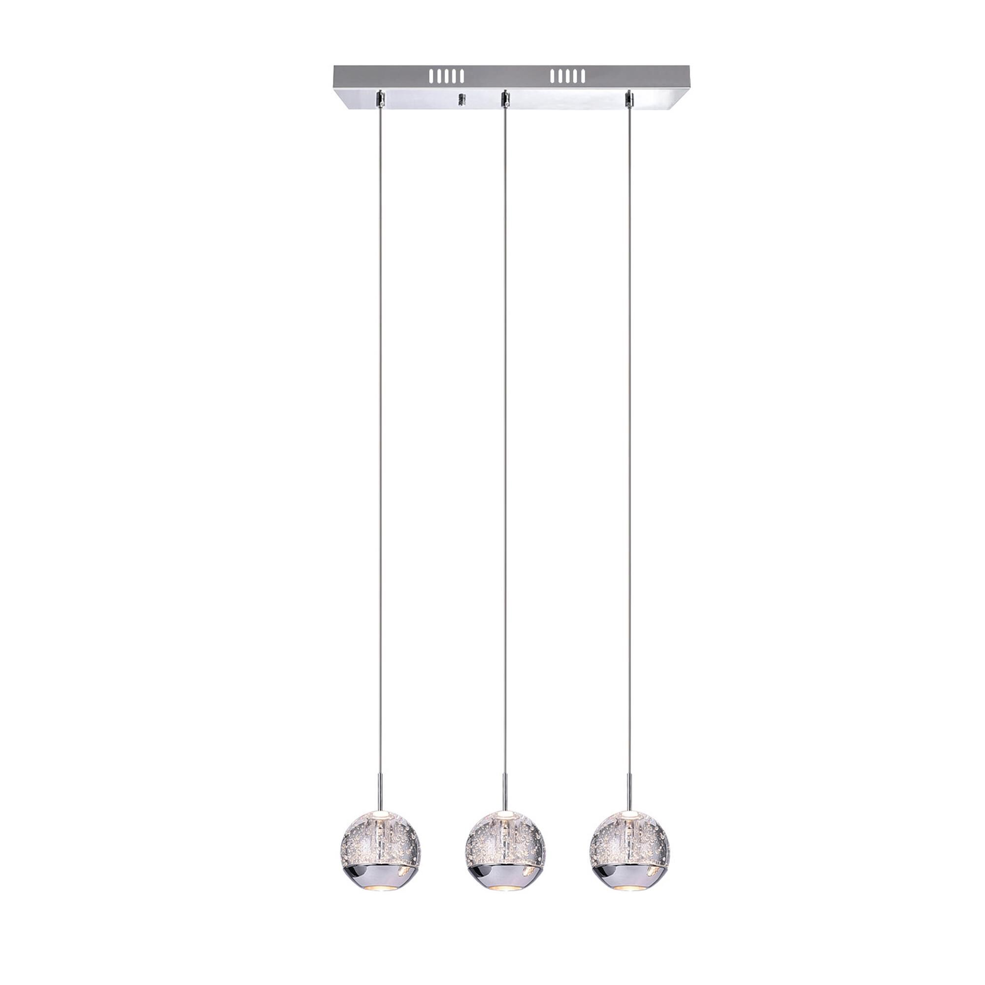 Easily revamp a ho-hum area by adding the Perrier 3 Light Globe Chandelier. This multi Light pendant features three shiny spheres dangling from a chrome-finished rectangular canopy. The cords are adjustable so you can hang the pendants in your preferred height. Designed with a clean and shiny look, this light fixture can give any space a luxe transformation.Lighting is jewelry for the home, and there is the perfect piece for every room. This fixture is done in a beautiful chrome finish which could be the missing piece to lighten up and fall in love with your space all over again.<br/><br/>Features :<br/><br/>- Feel confident with your purchase and rest assured. This fixture comes with a one year warranty against manufacturers defects to give you piece of mind that your product will be in perfect condition.<br/>- Dimensions: H 5" x W 5" x L 16"<br/>- Chrome Finish - LED DC G4 12V Bulb Not Included - Indoor (Dry Location)<br/>- cETLus Approved<br/>- Includes Assembly Instructions and Hardware<br/>- Compatible With Standard Low Voltage Dimmer.<br/><br/>Specifications :<br/><br/>- Number of Lights : 3<br/>- Voltage : 120v<br/>- Bulb Type : G4<br/>- Warranty Description : One year warranty against manufacturers defect<br/>- Installation Type : Hardwired<br/>- Material : Metal.
