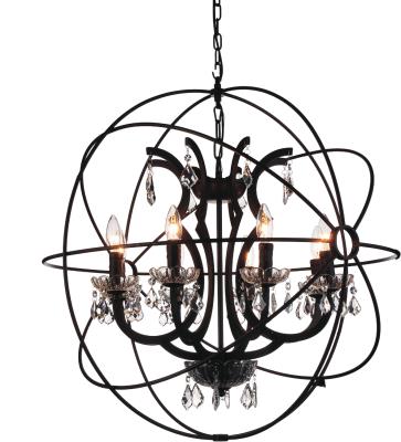 - The Campechia 8 Light Chandelier is an intricate creation that promises you of statement making impact. This rustic up chandelier features a candelabra frame of eight bulbs sitting inside a slender orbital frame in brown. The metal structure and the dark finish are softened by the curves and the warm light the candelabra bulbs bring. This 28 inch up chandelier will look perfectly at home in modern rustic or modern farmhouse interiors.