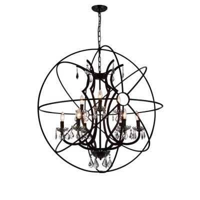 - Outfit your home with the stunning allure of Campechia 9 Light Chandelier. This light fixture looks like a creative interpretation of a vintage chandelier. A candelabra frame with nine arms is enveloped in circles by brown metal rings that form an orbit structure. This oversized up chandelier is held by an adjustable chain suspended from a metal canopy. Place it in your modern rustic living space and let it take your interiors' style to a whole new level.
