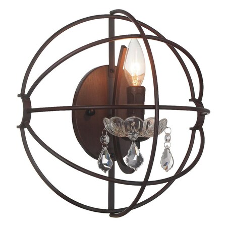 - Revive a bath with the Campechia 1 Light Wall Sconce. This rustic wall light in brown finish is ready to give your home some rustic refinement. On a circular wall plate is a single metal arm holding a candelabra complete with decorative glass drip pan. Clear crystal beads in teardrop shape adds a hint of luxury and a touch of chic style to this wall mounted light source. Completing the look is an open orb frame that allows light to shine through for that soft and perfect glow.