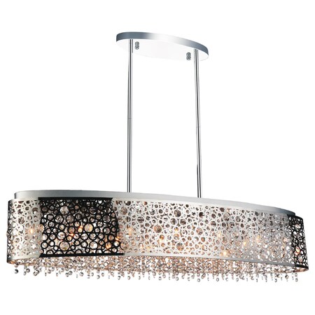 Adding this decorative light fixture to your interiors is a transformative design trick that's fast and easy to do. The Bubbles 16 Light Chandelier shimmers with grace and beauty with its laser-cut metal drum shade dripping with strands of tiny round clear crystals. Finished in chrome, this drum shade chandelier exudes a truly bubbly presence that's sure to liven up your space.Lighting is jewelry for the home, and there is the perfect piece for every room. This fixture is done in a beautiful stainless steel finish which could be the missing piece to lighten up and fall in love with your space all over again.<br/><br/>Features :<br/><br/>- Feel confident with your purchase and rest assured. This fixture comes with a one year warranty against manufacturers defects to give you peace of mind that your product will be in perfect condition.<br/>- Dimensions: H 10" x W 10" x L 46"<br/>- Stainless Steel Finish - G9 Bulb Not Included - Indoor (Dry Location)<br/>- cETLus Approved<br/>- Includes Assembly Instructions and Hardware<br/>- Compatible With Standard Low Voltage Dimmer.<br/><br/>Specifications :<br/><br/>- Number of Lights : 16<br/>- Voltage : 120v<br/>- Bulb Type : G9<br/>- Warranty Description : One year warranty against manufacturers defect<br/>- Installation Type : Hardwired<br/>- Material : Metal.