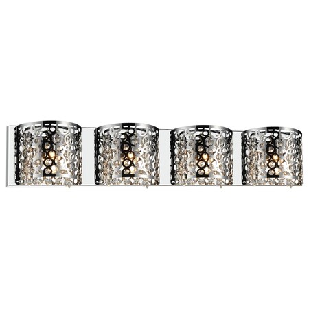 The Bubbles 4 Light Wall Sconce makes a mesmerizing accent in a compact space. This modern vanity light with strands of crystals and a chrome-finished concave shade allows you to easily give your bathroom or half bath an elegant update. That extra sparkle and shine will surely make you and your guests smile. Lighting is jewelry for the home, and there is the perfect piece for every room. This fixture is done in a beautiful chrome finish which could be the missing piece to lighten up and fall in love with your space all over again.<br/><br/>Features :<br/><br/>- Feel confident with your purchase and rest assured. This fixture comes with a one year warranty against manufacturers defects to give you piece of mind that your product will be in perfect condition.<br/>- Dimensions: H 6" x W 34" x L 4"<br/>- Chrome Finish - G9 Bulb Not Included - Indoor (Dry Location)<br/>- cETLus Approved<br/>- Includes Assembly Instructions and Hardware<br/>- Compatible With Standard Low Voltage Dimmer.<br/><br/>Specifications :<br/><br/>- Number of Lights : 4<br/>- Voltage : 120v<br/>- Bulb Type : G9<br/>- Warranty Description : One year warranty against manufacturers defect<br/>- Installation Type : Hardwired<br/>- Material : Metal.