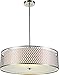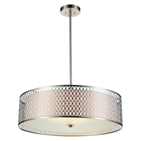 - Elevate your space with this elegant and easy to install drum shade chandelier. The Mikayla 5 Light Chandelier features a 22 inch outer drum shade in patterned metal finished in satin nickel. The inner drum that diffuses light is in off white. Ideal above a dining table, a kitchen counter, or even a pool table, this light fixture will illuminate any space with a beautiful glow.