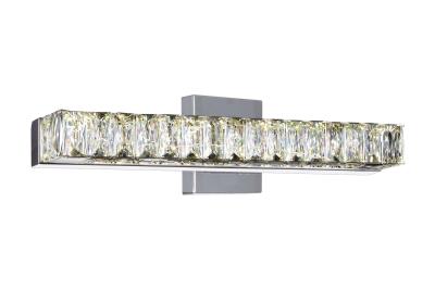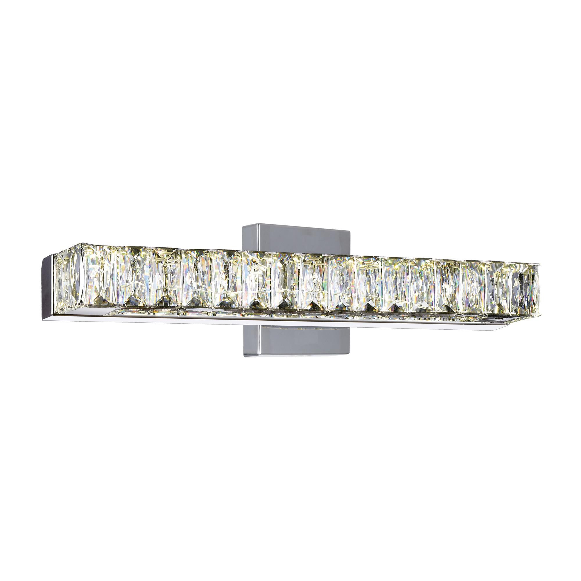 - Give your bathroom a bedazzling makeover with the Milan 16 inch LED Wall Sconce. This vanity light has integrated LED chips sandwiched between two linear formation of faceted clear crystals. Expect a brilliant glow from this light source that is also dimmer compatible. Finished with polished chrome hardware, this fixture can brighten up and glam up even the most clinical and characterless bath.