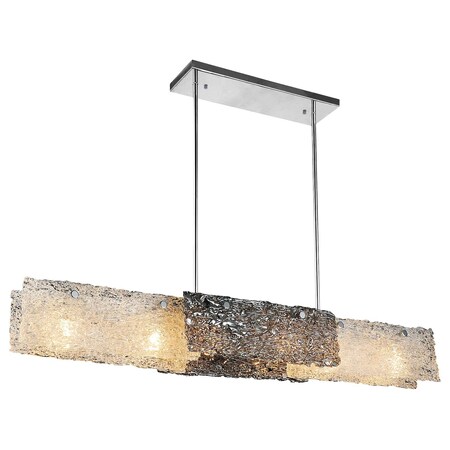 - Here is a playful sculptural chandelier that will make cooking much more pleasant. The Wilma 6 Light Chandelier is a linear light fixture that measures 44 inches long. Panels of clear and smoke colored textured glass are combined to form a trend setting linear suspension that delivers light and makes a room look wider and longer. Providing warm and even light, this chrome finished down chandelier makes a tidy style statement in your luxe kitchen or dining space.
