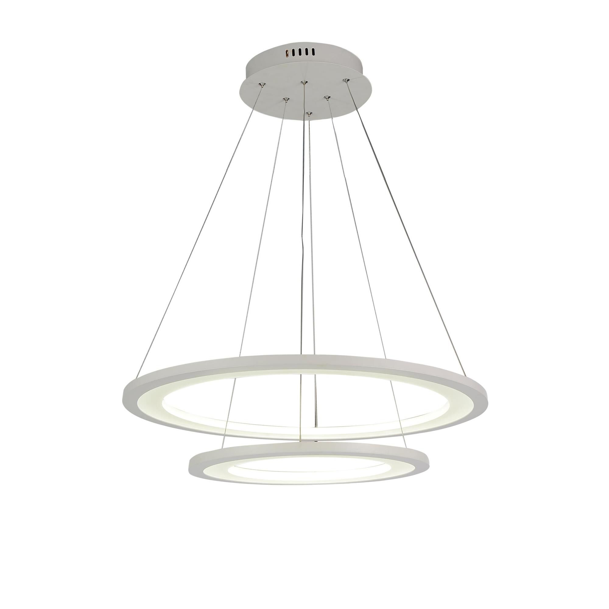 Featuring modern minimalism, the Large Alloha 24 inch LED Chandelier would make an intriguing centerpiece. On a round ceiling canopy are almost invisible cables holding two rings of LED light. A larger halo is positioned above a smaller LED halo; both disperses light widely and comfortably. The white finish complements the simplicity and elegance of this exquisitely crafted piece from the Alloha Collection.Lighting is jewelry for the home, and there is the perfect piece for every room. This fixture is done in a beautiful white finish which could be the missing piece to lighten up and fall in love with your space all over again.<br/><br/>Features :<br/><br/>- Feel confident with your purchase and rest assured. This fixture comes with a three years warranty against manufacturers defects to give you peace of mind that your product will be in perfect condition.<br/>- Dimensions: H 6" x W 24" x L 24"<br/>- White Finish - Integrated LED Bulb Included - Indoor (Dry Location)<br/>- cETLus Approved<br/>- Includes Assembly Instructions and Hardware<br/>- Compatible With Standard Low Voltage Dimmer.<br/><br/>Specifications :<br/><br/>- Number of Lights : 2<br/>- Voltage : 120v<br/>- Bulb Type : Integrated LED<br/>- Warranty Description : Three years warranty against manufacturers defect<br/>- Installation Type : Hardwired<br/>- Material : Metal.