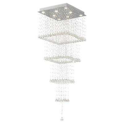 - The Square 8 Light Flush Mount would make a stellar statement piece in your living room, entryway, or stairwell. This close to ceiling chrome finished light source has four square tiers of crystal strands finished at the bottom tip with a single crystal ball drop. The fanciful design that sparkles day and night can clearly provide pizzazz to any space.