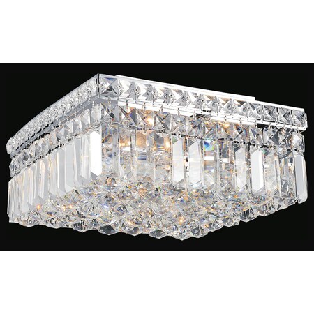 - An elegant lighting option with a crystal diffuser perfect for bringing romance into a room. This lighting option is designed with a square silhouette measuring 16 inches. Crystals in varying shapes and sizes adorn this luminaire. When paired with bright walls and sheer window treatments, this Colosseum 4 Light Flush Mount can make a space look chic and sophisticated yet the room feels intimate and cozy.